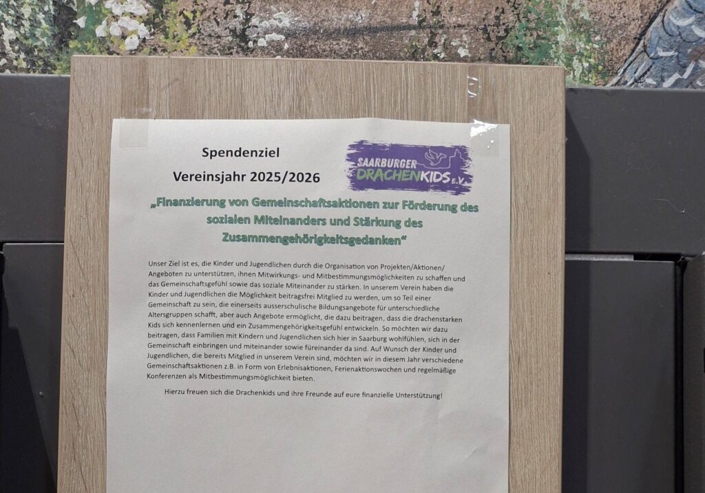 Von Januar bis Juni 2026 könnt ihr bei der Leergutrückgabe eure Pfandbons zugunsten der Arbeit der Saarburger Drachenkids e.V. spenden und damit Kinder und Jugendliche in Saarburg und der Umgebung unterstützen.