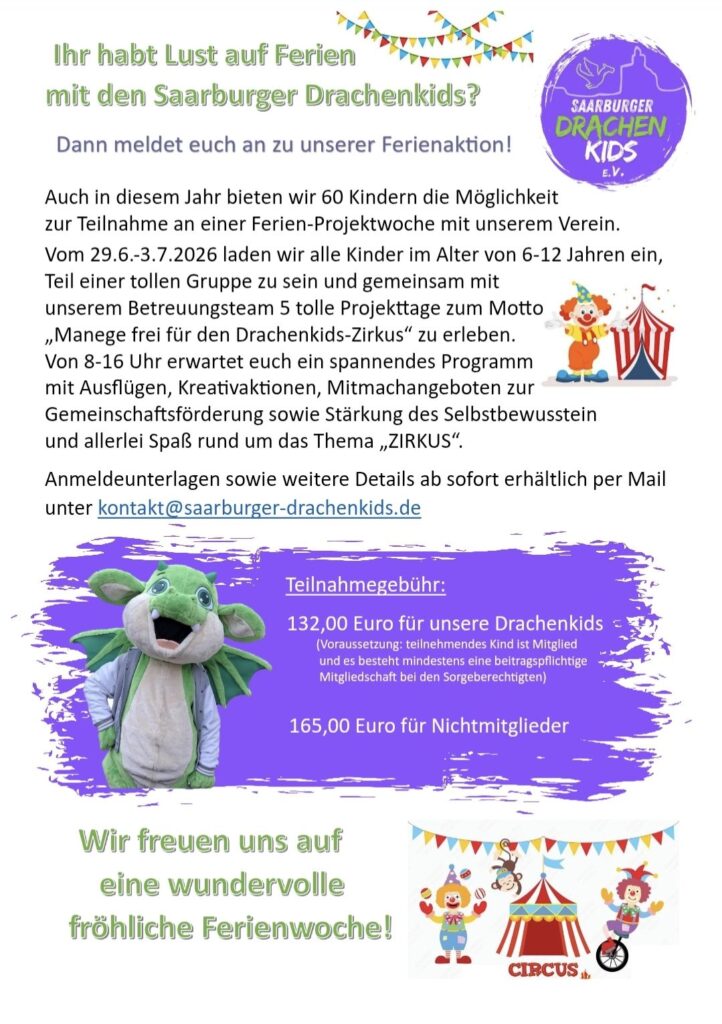 Die Anmeldung zur Teilnahme an der Mitgliederversammlung ist bis 9.3.2026 per Mail an kontakt@saarburger-drachenkids.de zu richten.