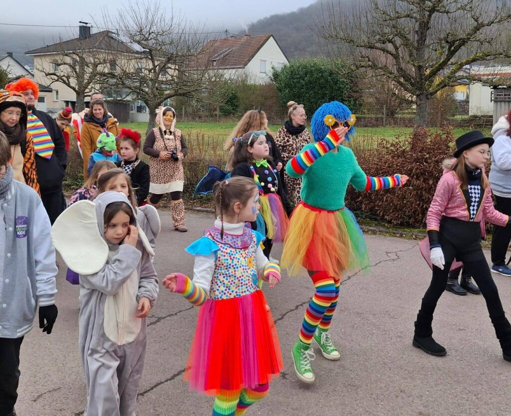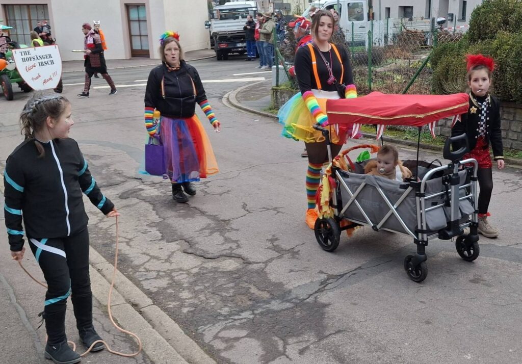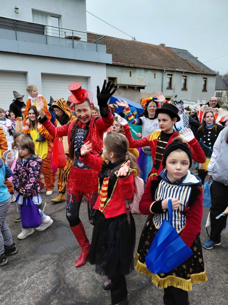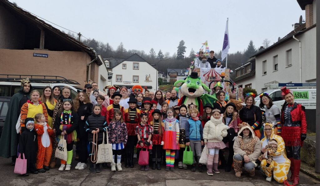 Mit strahlenden Augen, bunten Kostümen und närrischem Tanz verwandelten sie die Straßen von Irsch in eine bunte Zirkuswelt voller Drachen und Zirkuswesen. Was für ein spektakulärer Auftritt!